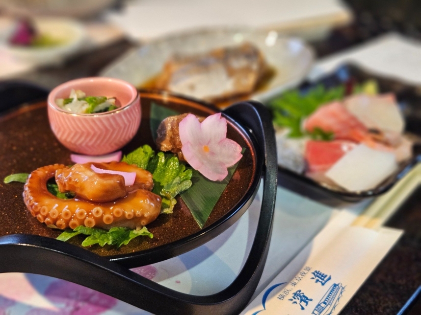 屋形船の中で濱進さんの出来立ての美味しいお料理をいただきながら