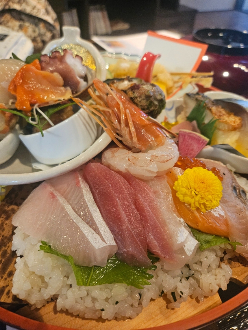 その名の通り、脂ののったおいしい海鮮丼と海鮮がぎゅうぎゅうに詰められていて美味しくいただきました。