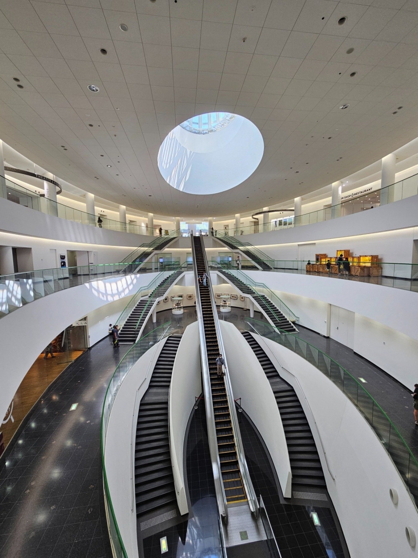 黒川紀章設計の館内は3階から地下1階までのアクセスはシンメトリックなデザインで、まるで宇宙船★