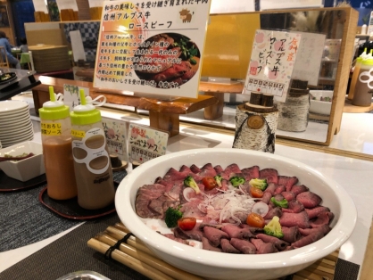 連泊の休暇村乗鞍高原ではバイキングでお腹いっぱい。