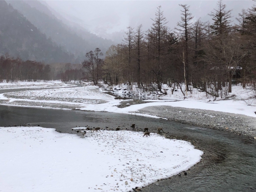 景色は残念ながらガスってしまいましたが、なかなか来れない真冬の上高地を楽しみました!