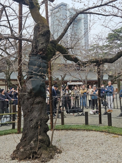 翌日は、靖國神社へ。境内の標準木前には『開花宣言』を今か今かと待つ報道陣、参拝客で溢れていました。