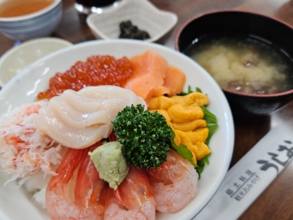 神威岬の近くの“食堂うしお”さんでいただいた海鮮丼もとっても美味しかったです。