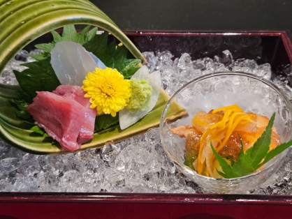 こちらはミニ会席コースのお刺身です。新鮮で美味しかったです。