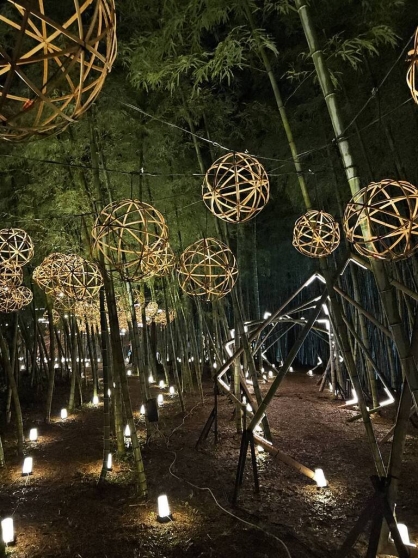 田上町には約17ha、東京ドーム3.6個分もの竹林が存在しており、 竹の名産地として知られています。 しかし現状は、放置竹林や廃棄竹問題や竹の活用にはまだまだ課題が…。この竹問題の解決と竹を使った魅力発信の為に、地元の方々と一緒に活動し、作り上げていくプロジェクト。!そのプロジェクトのひとつが、たがみバンブーブー2025です。 竹の切りだし切断穴あけ設置…すべてを地元の方と一緒に作り上げた竹あかりのアート作品です。