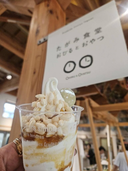 道の駅たがみのたがみ食堂でいただいた“うめ味噌ソフト”。