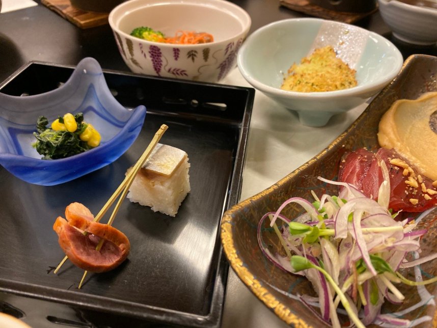 カレイの香草焼きや牛すきなど全12品で大満足!約3時間の滞在なのでお食事の後にはもちろん温泉も♪温泉饅頭も忘れずに~♪