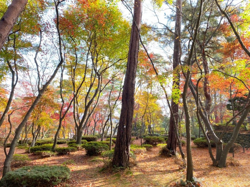 朝一番でお伺いさせてもらったので園内にはまだ誰もいなく静かに園内を散策することが出来ました。ピークは少し過ぎてしまっていましたが日が差し込むともみじがより輝いて綺麗でした!!