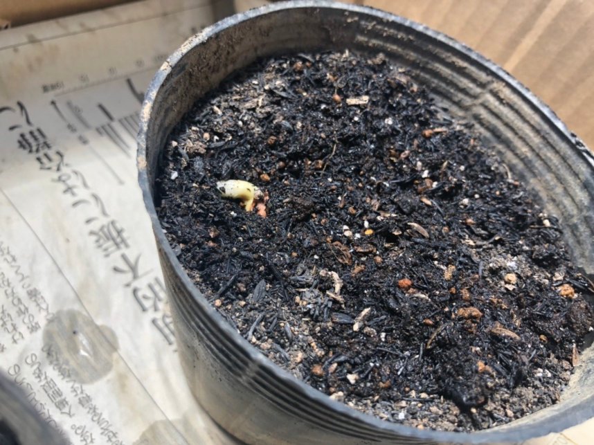 はじめにポットに3粒ずつ種を植えて、芽が出るのを待ちます。。