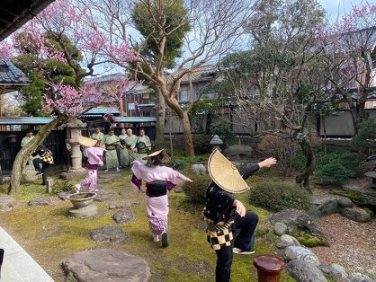 笹祝酒造さんにて。 おわら風の盆が新潟にやってきた。 そして老舗酒蔵でおわらと宵の舞が念願のコラボレーション! 満開の梅の下、サプライズで踊るおわらは絵のように美しいものでした。 この共演に立ち会えた人はとてもラッキーだったと思います。
