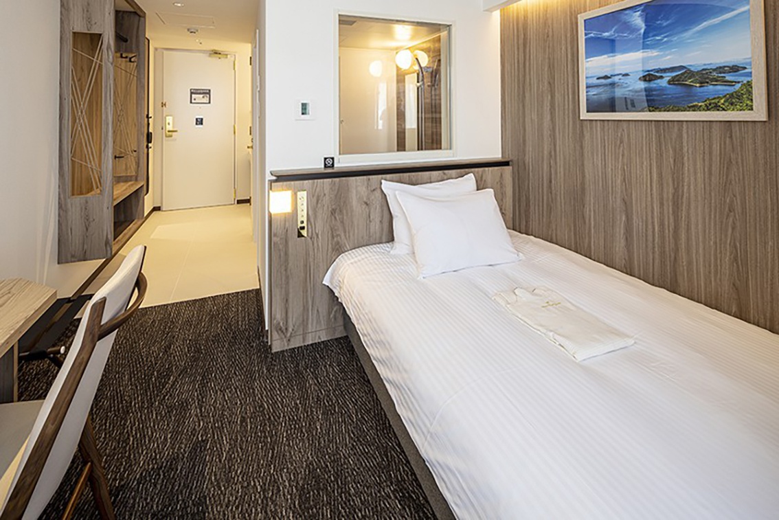 地元で人気の結婚式場でもあり、料理には定評があるホテル。お泊りいただくのは2019年9月オープンの新館のお部屋。シングルでも20㎡近い広さで、バスルームとトイレは完全セパレートでお湯を流せる最新タイプ。朝食も美味しいと評判で、2連泊する今回の旅にピッタリのホテルです。