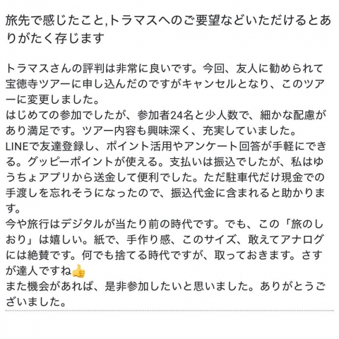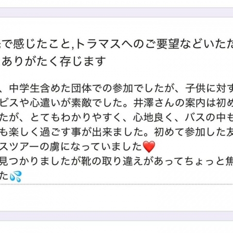 先日のツアーに参加させて頂き有難うございました。ライン登録しました...