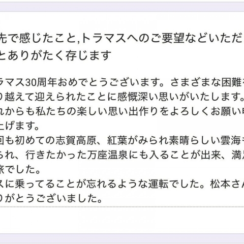 トラマス30周年おめでとうございます。さまざまな困難を乗り越えて迎え...